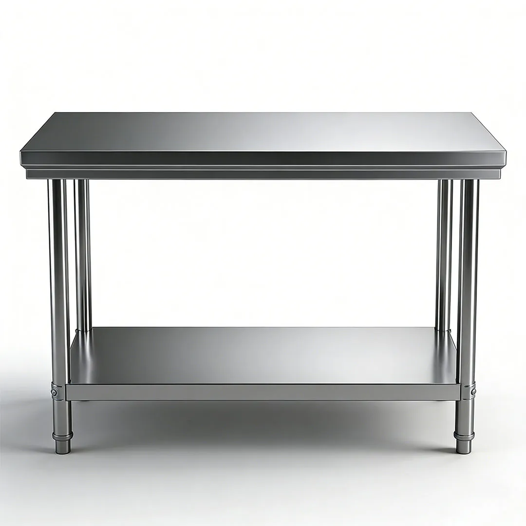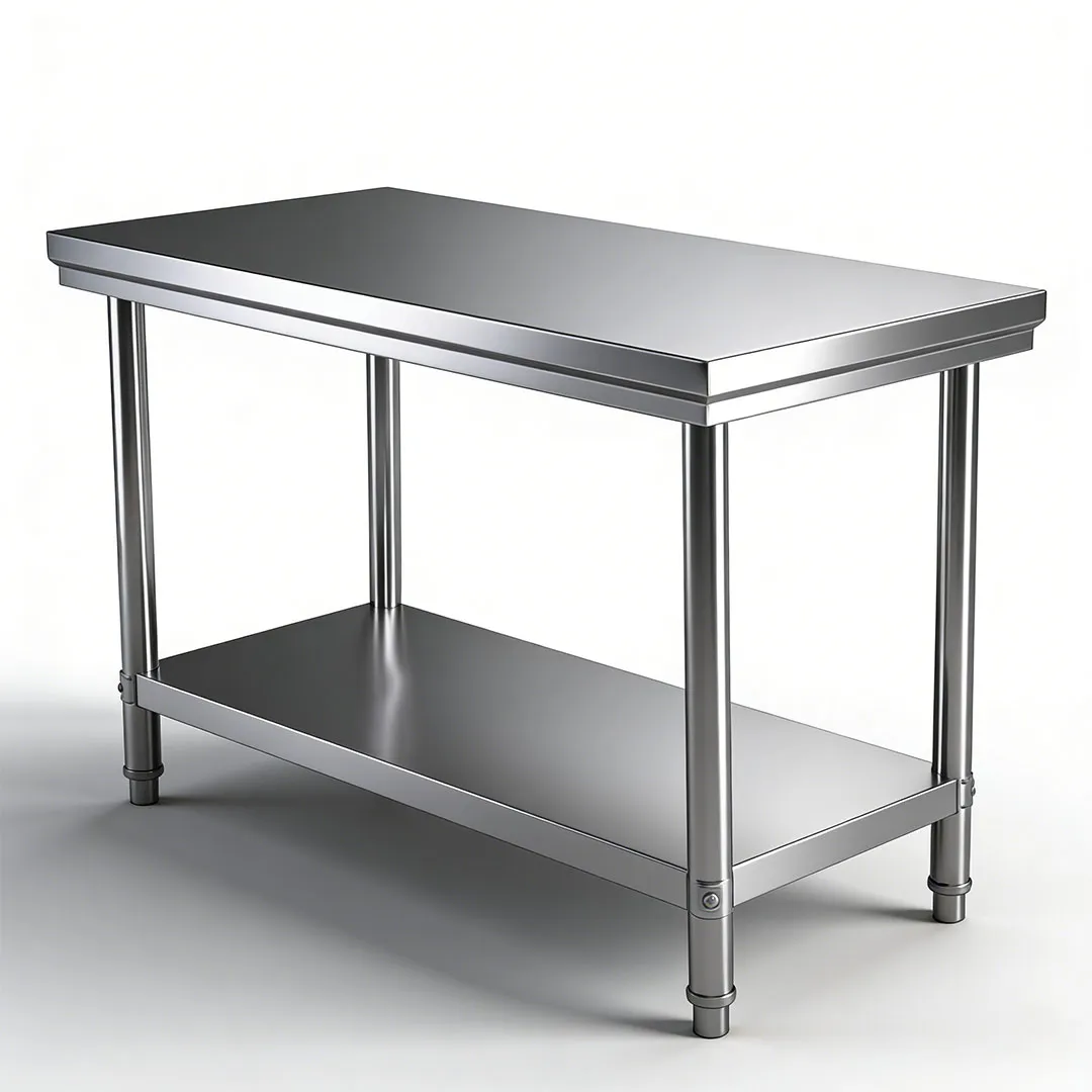 The Прочный двухъярусный рабочий стол для коммерческого использования is a heavy-duty, multi-functional workspace solution engineered for the high-intensity demands of commercial kitchens, food service facilities, and professional catering environments. Designed to maximize efficiency and space utilization, it features two sturdy tiers: an upper work surface optimized for food preparation, equipment placement, and daily operational tasks, and a lower tier for convenient storage of frequently used tools, cookware, ingredients, and utensils. Crafted with premium, long-lasting materials and a reinforced structure, this worktable is built to withstand continuous heavy use, high temperatures, and frequent cleaning—making it an indispensable asset for restaurants, hotels, canteens, bakeries, and other high-volume food service operations. It seamlessly combines robust functionality with space-saving design, helping businesses streamline workflow, reduce clutter, and maintain a hygienic, organized workspace.