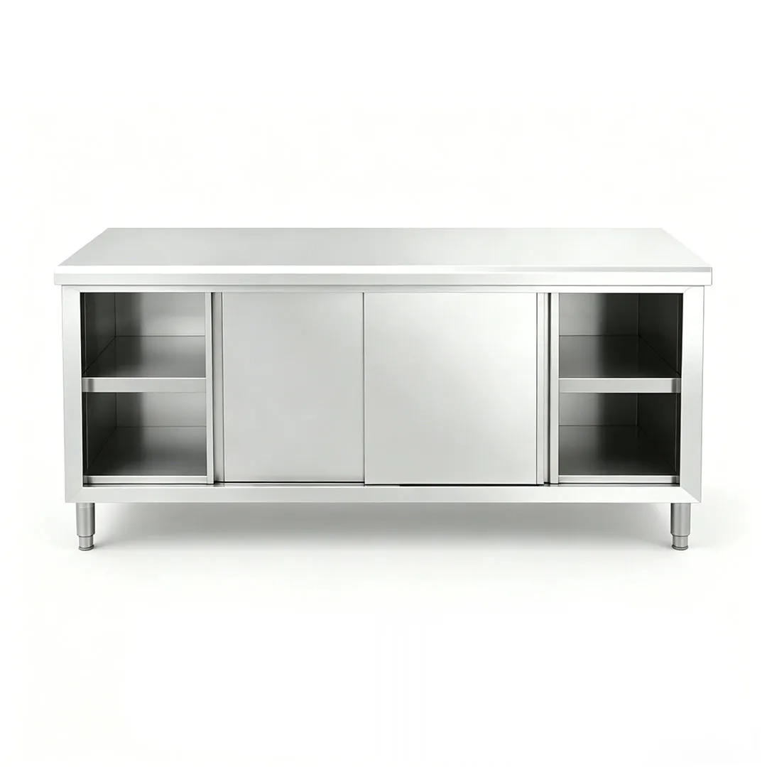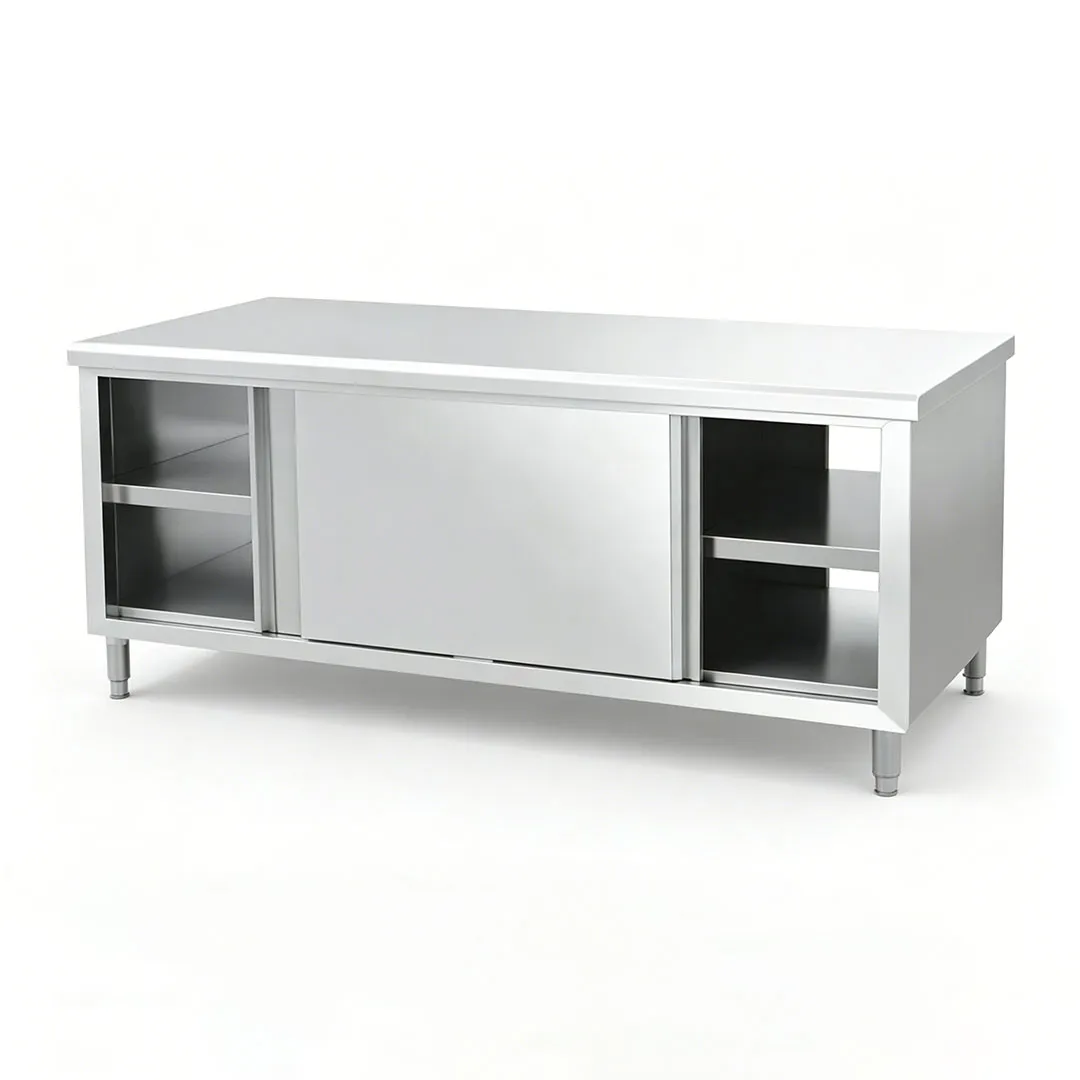 Стол для приготовления пищи из нержавеющей стали с раздвижными дверцами, разработанный специально для крупных коммерческих предприятий общественного питания, сочетает в себе прочную рабочую поверхность с закрытым хранилищем, обеспечивая универсальное решение для приготовления, организации и соблюдения гигиены. Этот стол, изготовленный из пищевой нержавеющей стали, предназначен для того, чтобы выдерживать суровые условия загруженных коммерческих кухонь, предприятий общественного питания и цехов пищевой промышленности, предлагая стабильное, легко очищаемое рабочее пространство, в то же время аккуратно храня необходимые инструменты, ингредиенты и оборудование за плавно раздвижными дверцами. Интегрированная конструкция раздвижной двери экономит место по сравнению с традиционными распашными дверями, что делает ее идеальной для компактных кухонь, а бесшовная конструкция из нержавеющей стали обеспечивает соблюдение строгих стандартов безопасности пищевых продуктов, предотвращая перекрестное загрязнение и рост бактерий.